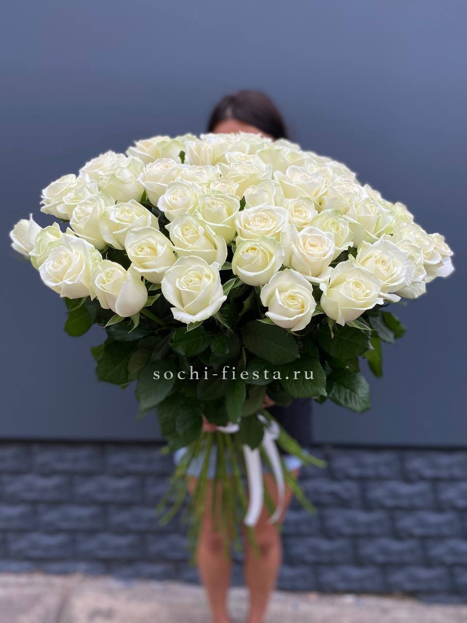 Пятьсот один бутон выстроены плотными рядами в глубокой корзине. Белоснежная композиция создаёт эффект цветочного облака, способного заполнить собой всё пространство вокруг.