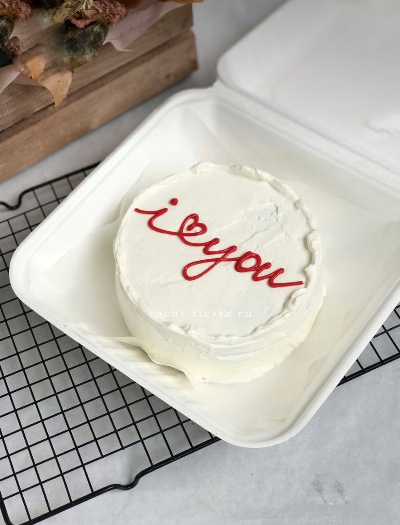 Компактный десерт ручной работы с яркой надписью о чувствах. Крем ложится ровно, декор читается с первого взгляда. Формат для двоих или личного момента радости.