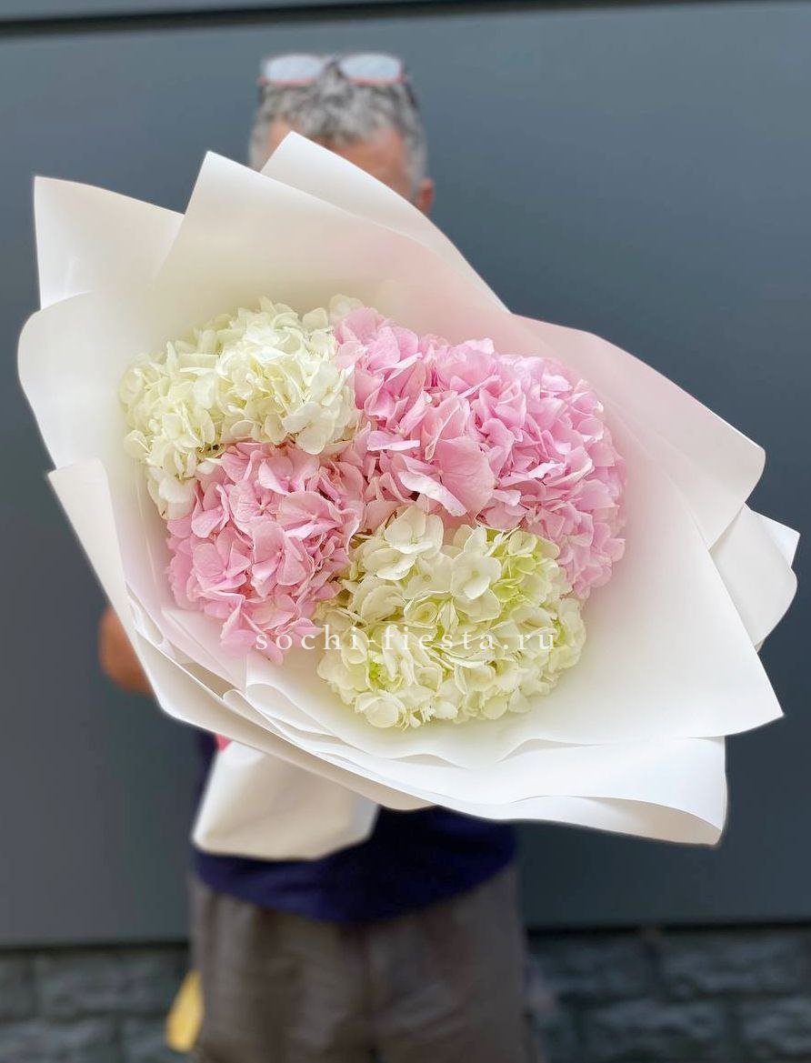 гортензия - 5 шт., лента, дизайнерская упаковка.
