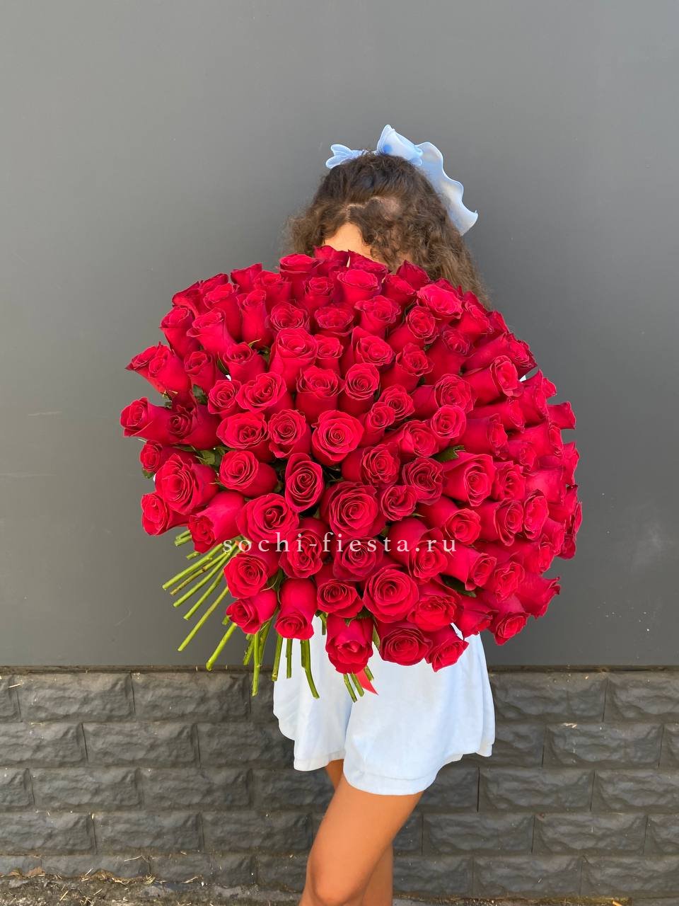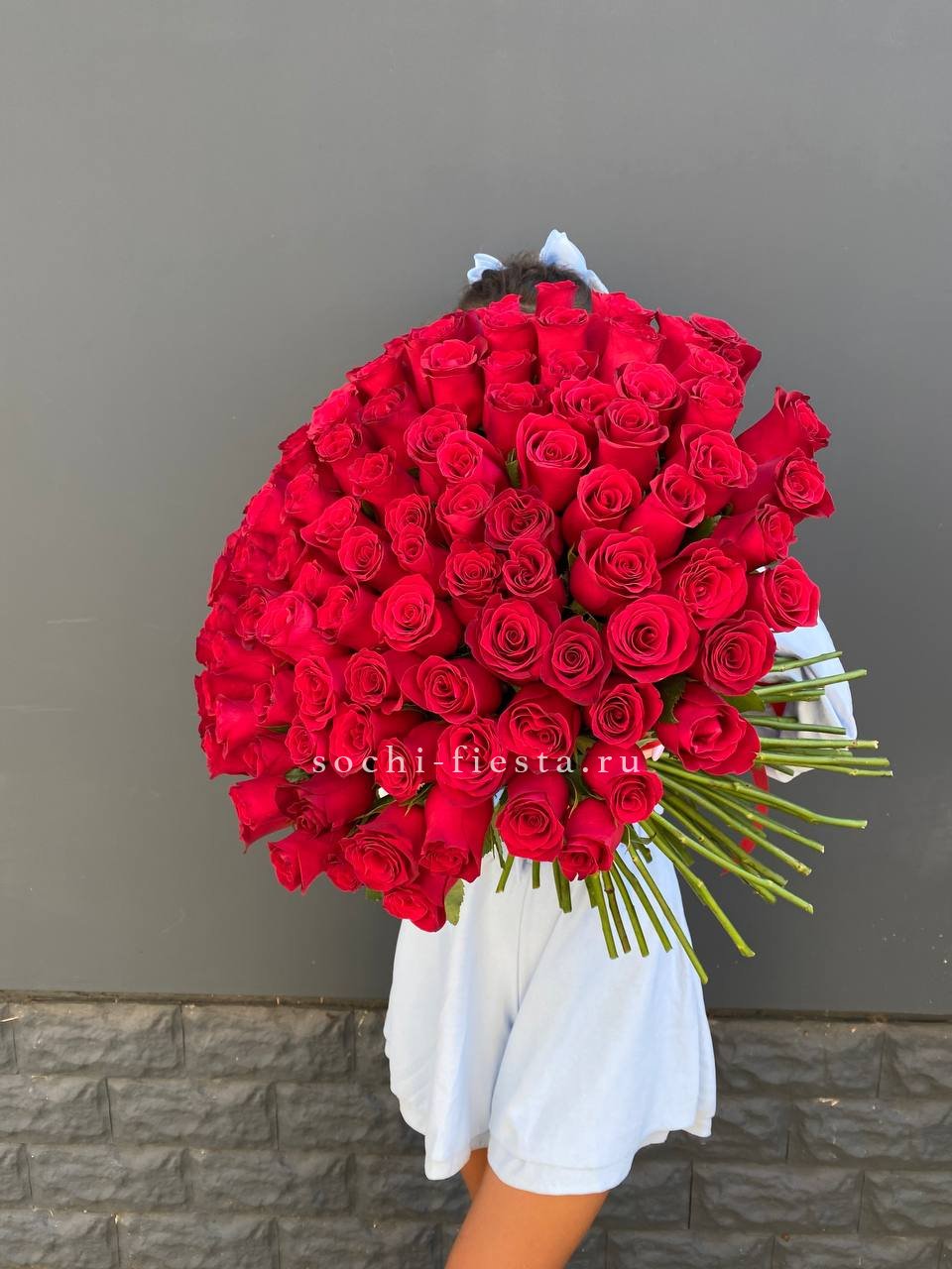 Сорт Lolita отличается насыщенным цветом и крупными бутонами с бархатистой текстурой лепестков. Пятьдесят пять стеблей формируют внушительную композицию с выраженным объемом. Букет выглядит как самостоятельный арт-объект.