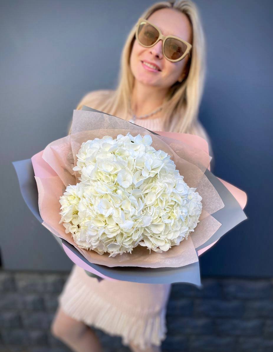 Для заказа товара "Букет из трёх белых гортензий" с доставкой в Калининграде нажмите в корзину