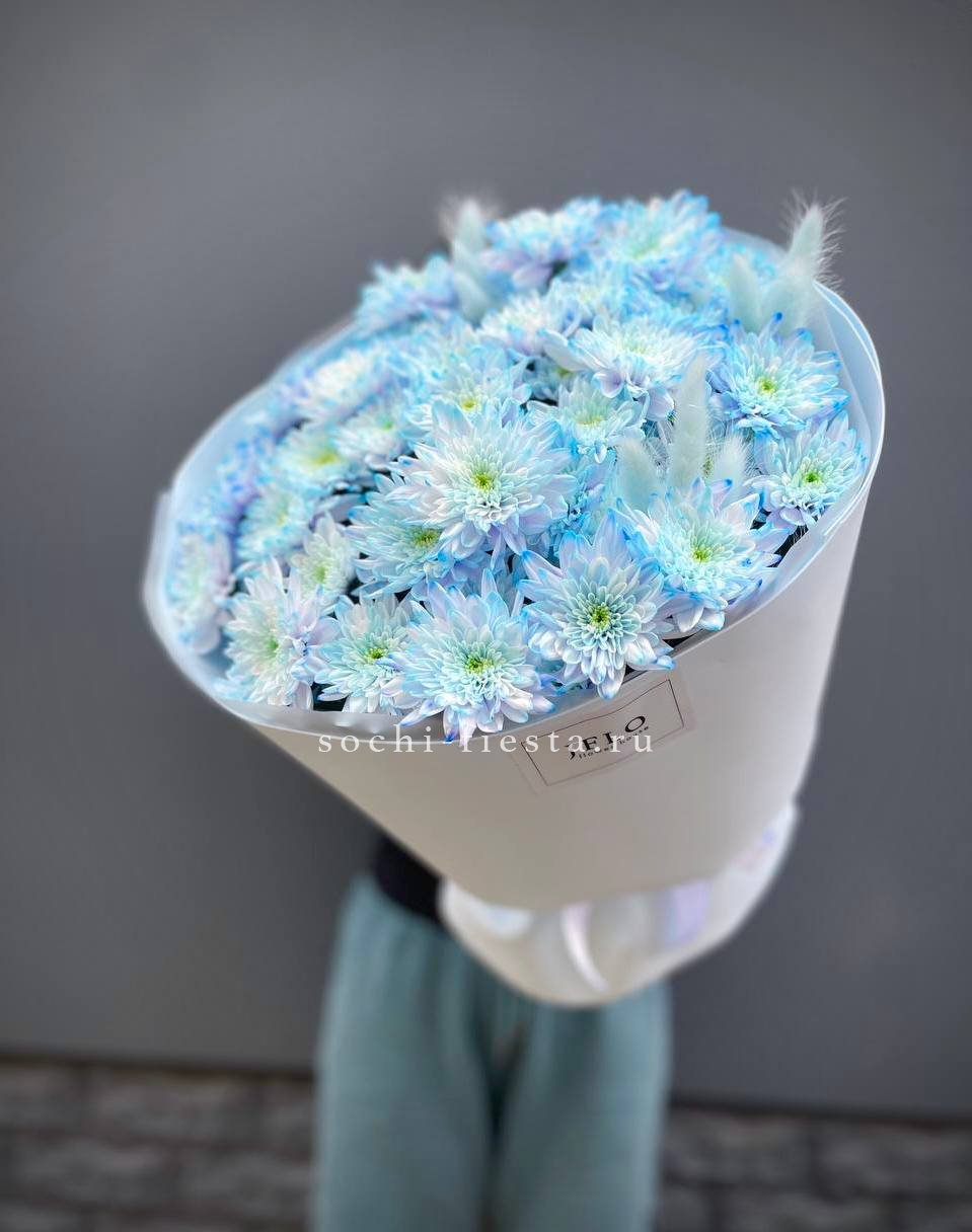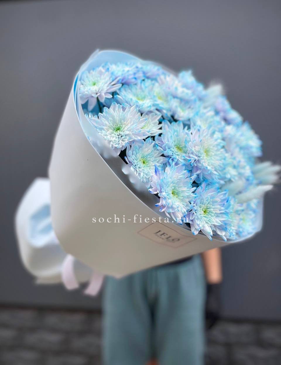 Fifteen веток кустовой хризантемы образуют пышное облако из множества мелких бутонов. Простая упаковка не отвлекает от густоты соцветий и их природной фактуры. Букет долго сохраняет свежесть и объём.