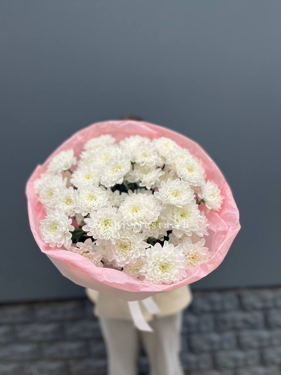 хризантема кустовая - 5 шт., лента, дизайнерская пленка.