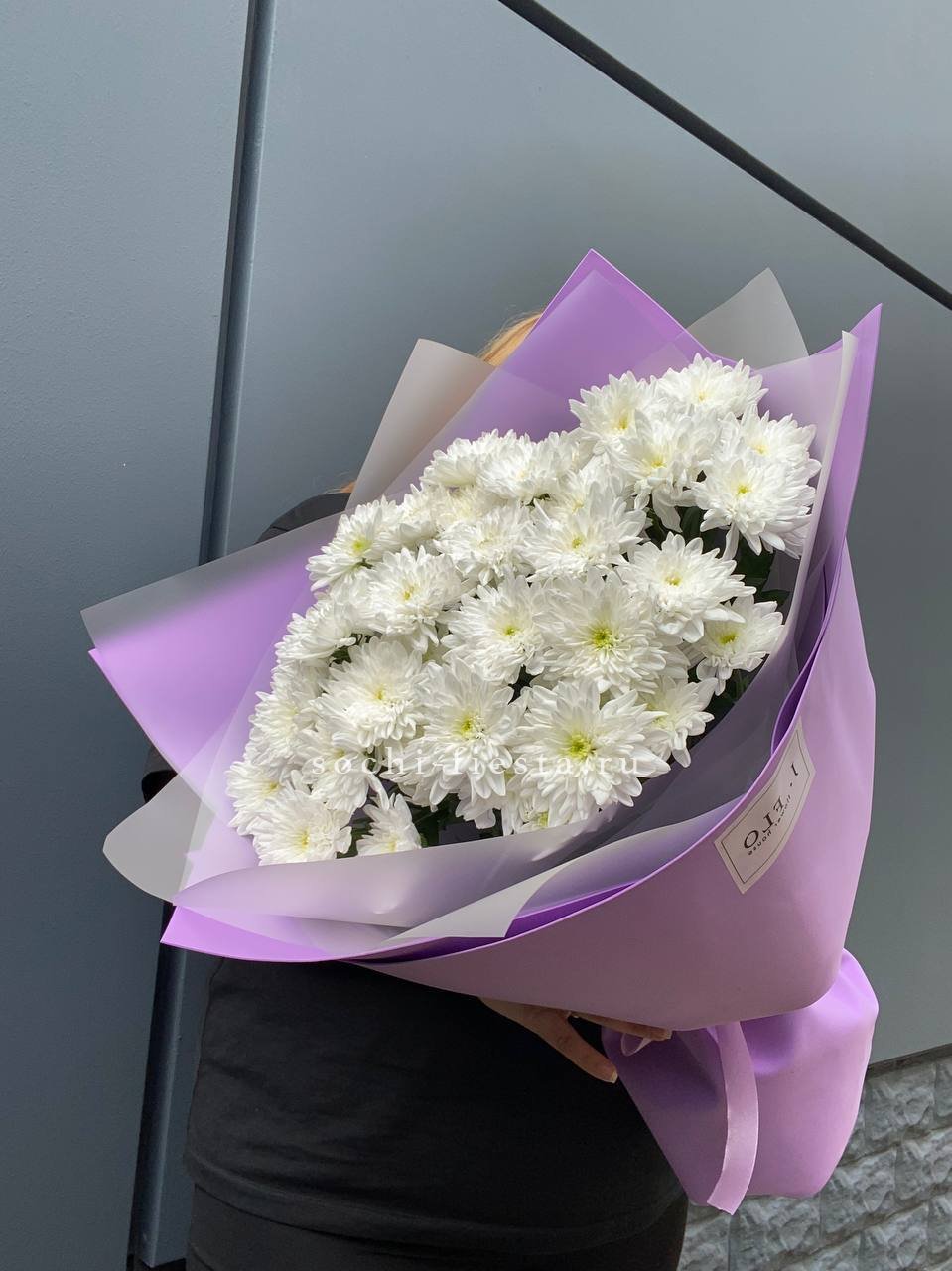 хризантема кустовая - 9 шт., лагурус, пленка,  лента.