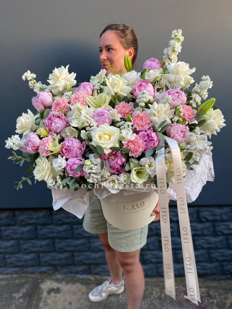Белоснежные головки пионов раскрываются пышными шарами и наполняют композицию светом. Выберите нужное количество и соберите букет по вашему желанию.