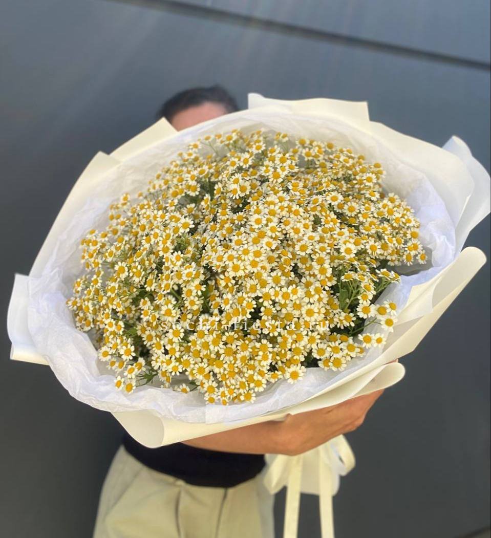 ромашки (танацетум камилла) - 25 веток, лента, упаковка.