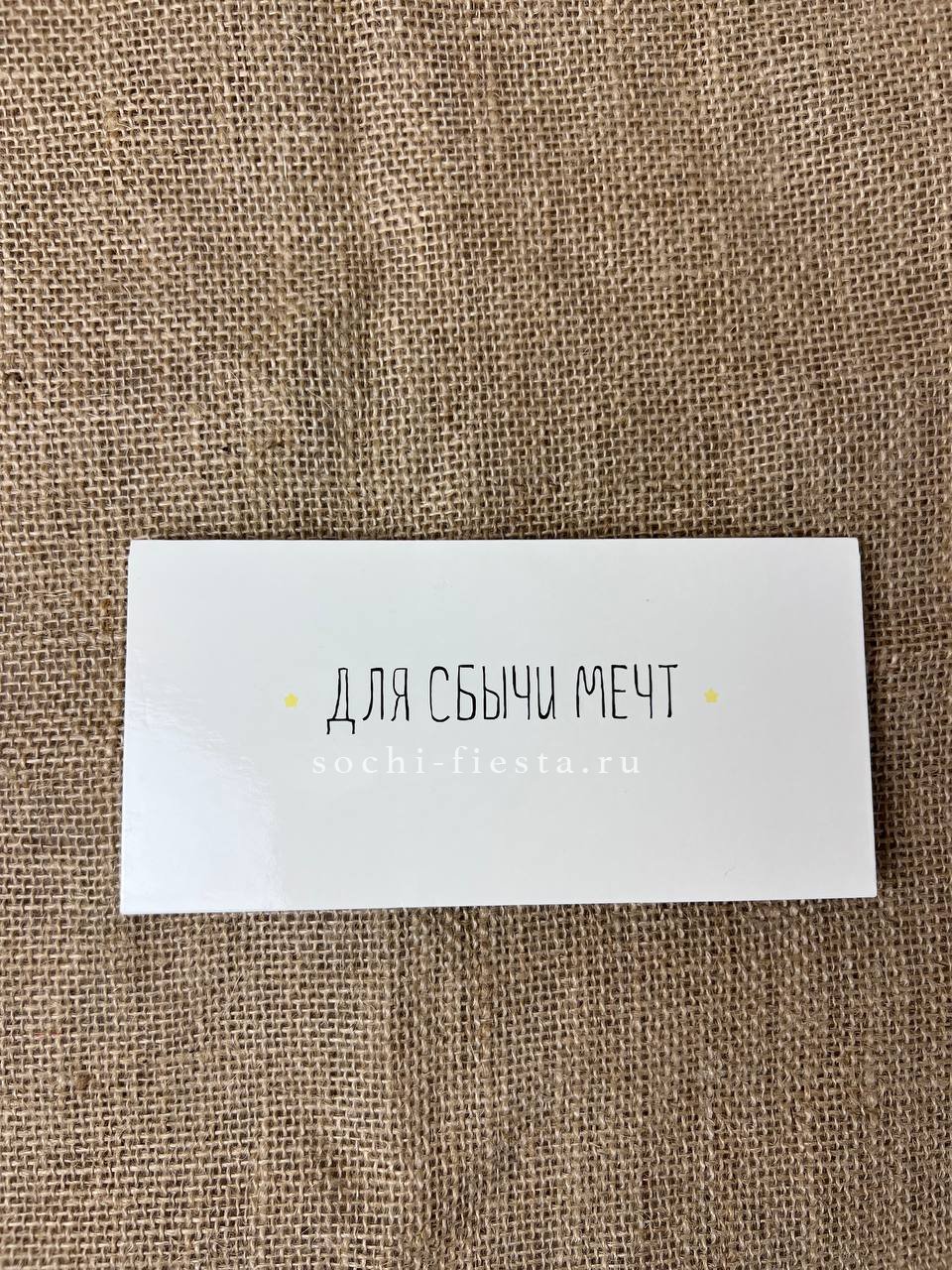 Лаконичный конверт с надписью о воплощении желаний. Практичное решение для подарка, который говорит сам за себя.