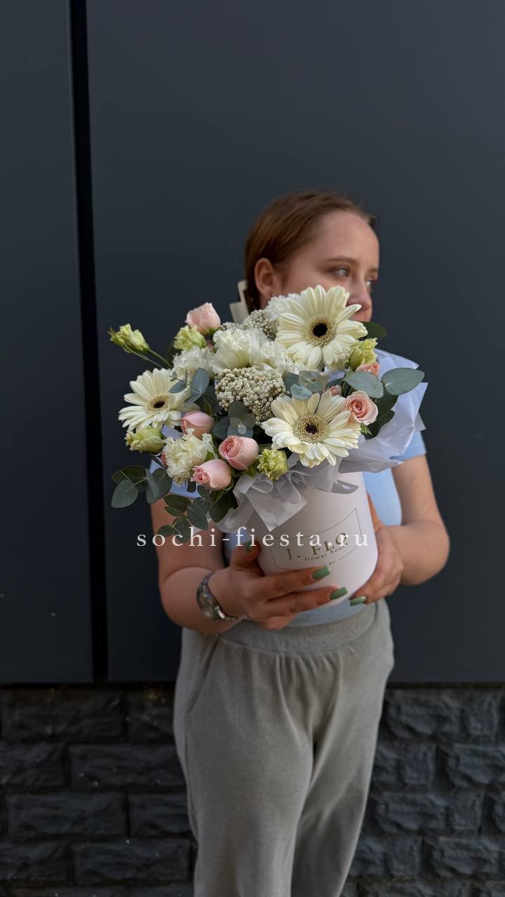 гербера, бомбастик, озотамус, эвкалипт, эустома, бокс 13.