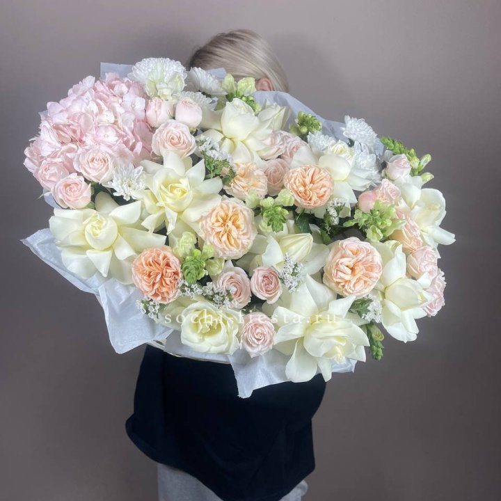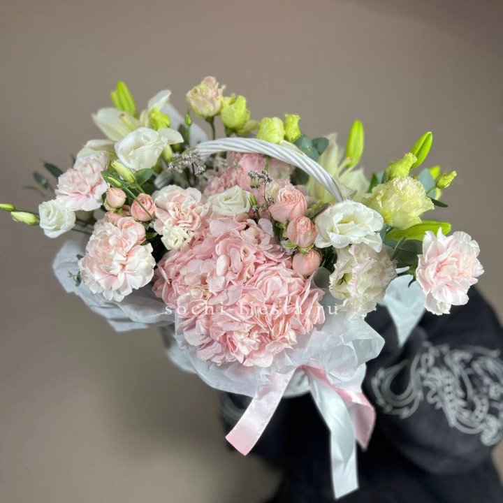 Каждый сезон приносит в Калининграде свой ассортимент корзин. Весной флорист создаёт корзины с тюльпанами и нарциссами — лёгкие, нежные, полные ощущения обновления. В мае-июне приходят пионы — Sarah Bernhardt, Bowl of Cream, Red Charm — главный флористический праздник. Осенью — хризантема в тёплых гаммах с декоративными ягодами и ветвями. Зимой — хвойные аранжировки с амариллисом для праздничной атмосферы.