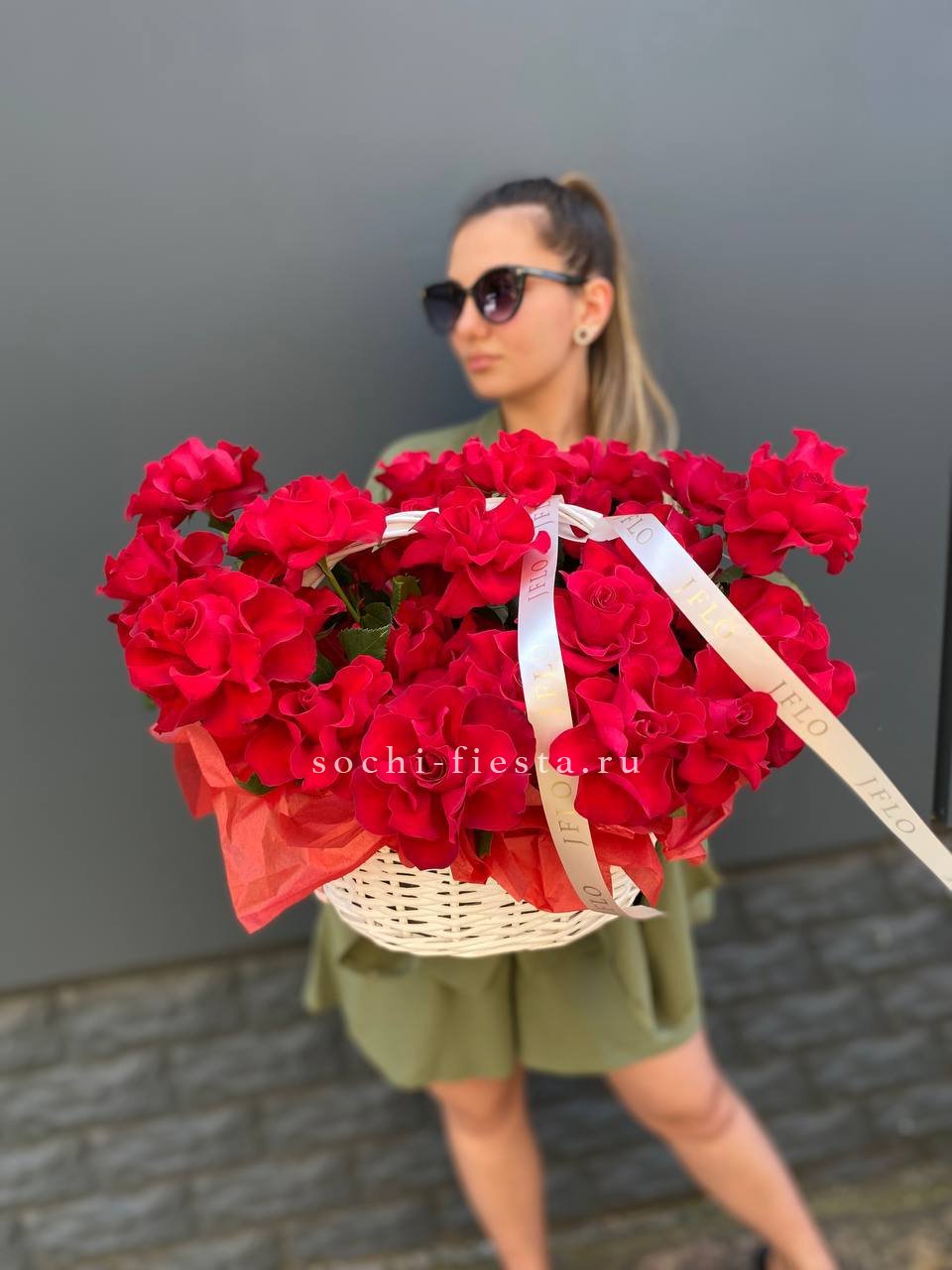 Красные французские розы в корзине