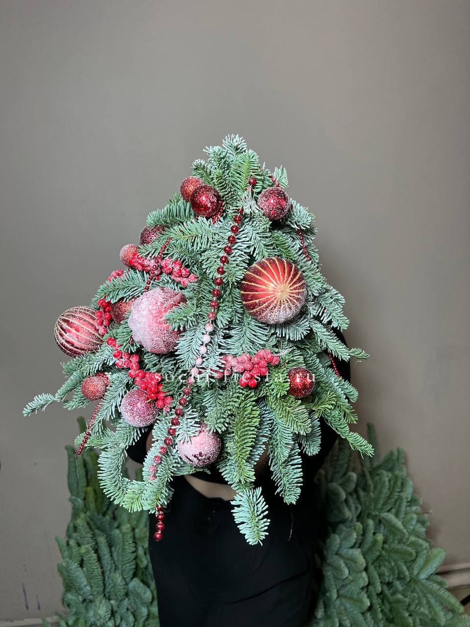ёлочка с красными игрушками. Композиция может иметь изменения не значительные!Украшается только перед ёлочки)