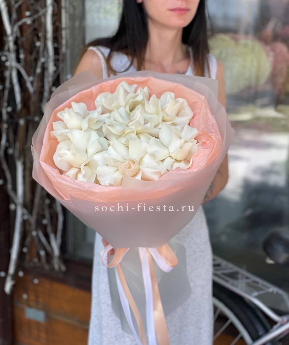 Состав: 7 кремовых роз, лента, упаковка на выбор