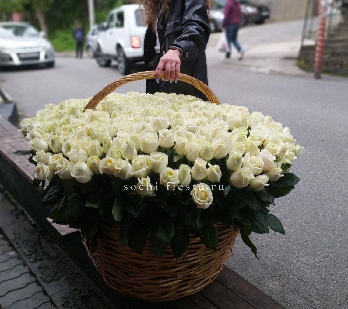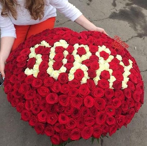 Пятьсот одна роза образует форму сердца из белых и красных бутонов. Плотная композиция в корзине удерживает симметрию и объём без дополнительных конструкций. Готовое решение для выражения чувств в масштабной форме.