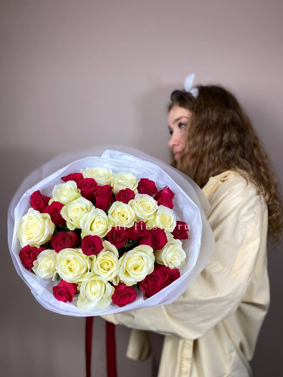 Для заказа товара "Букет из красных белых 35 роз" с доставкой в Калининграде нажмите в корзину