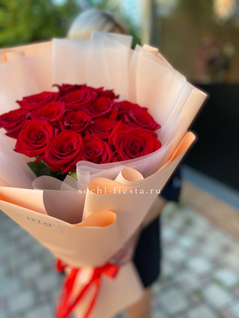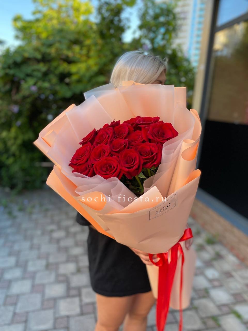 15 высоких красных роз