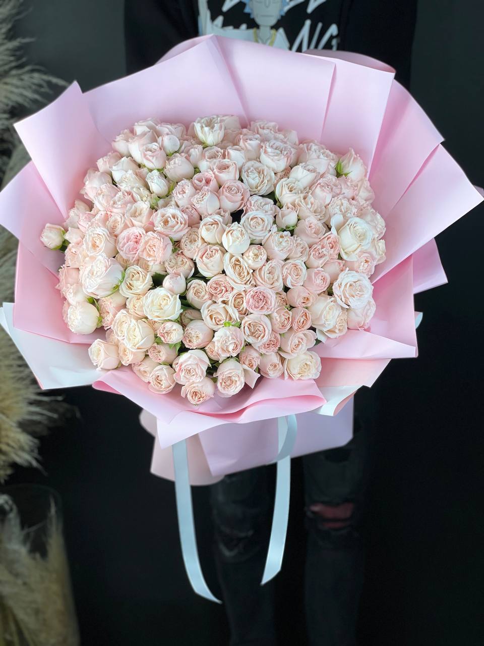 минимальный состав: кустовые розы 31шт., лента, упаковка на выбор.