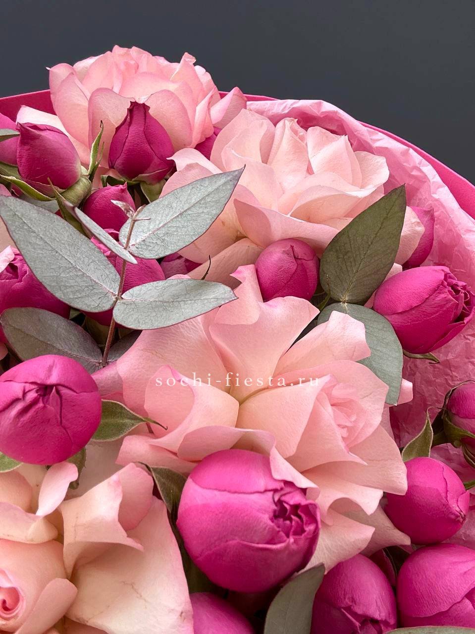 французские розы, пионовидные розы мисти бабблс, эвкалипт, оформление.