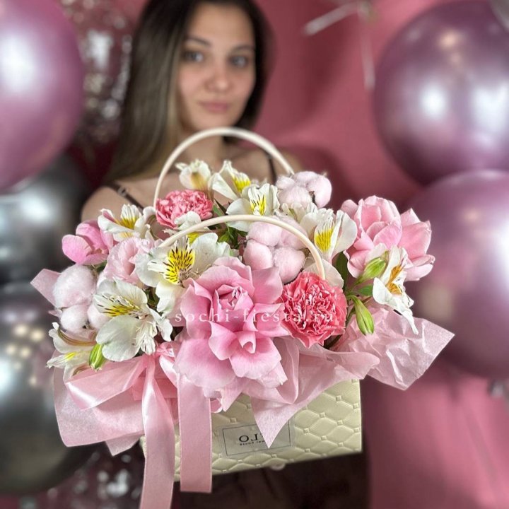 Выписка из роддома — пастельные тона в шляпной коробке с лентой нужного цвета. Поздравление руководителя — в корзине с флористической губкой. Выпускные детей — небольшие букеты в нейтральной палитре.