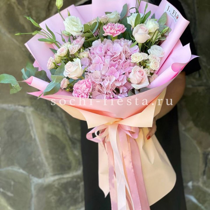 Самые популярные букеты в Калининграде — это моно-букеты из 25 и 51 розы, шляпные коробки с гипсофилой, композиции с пионами в сезон, свадебные букеты под эскиз, авторские миксы с эвкалиптом и лавандой.