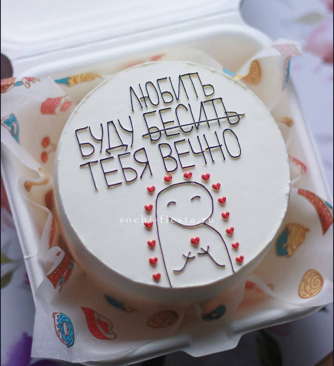 Яркий бенто-торт с дерзкой надписью и продуманным оформлением. Два варианта начинки делают его универсальным для разных вкусов. Отличный способ добавить юмора в праздничный день.